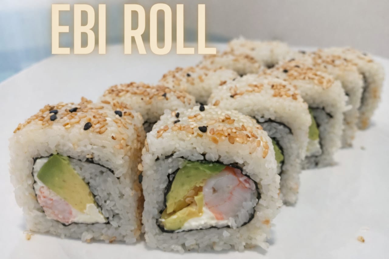 Camarón, Aguacate, y filadelfia por dentro, ajonjolí por fuera.